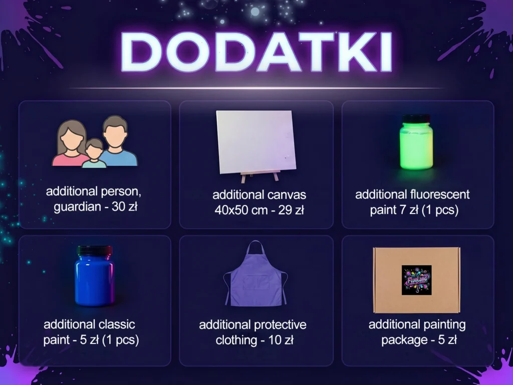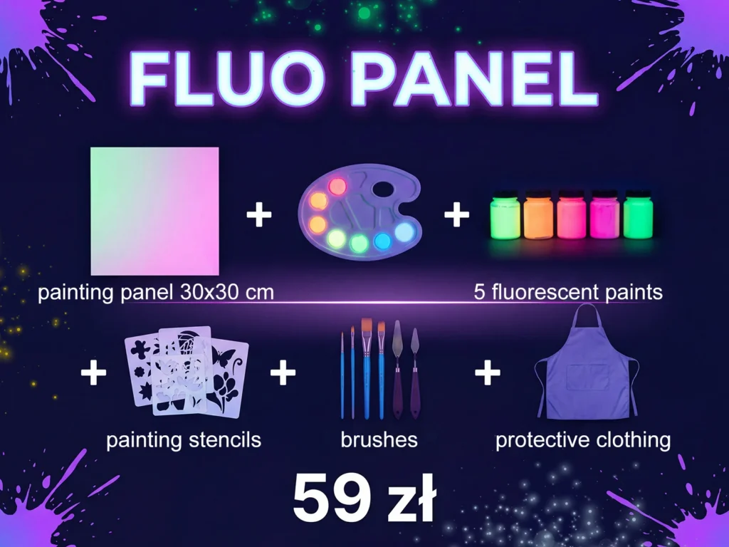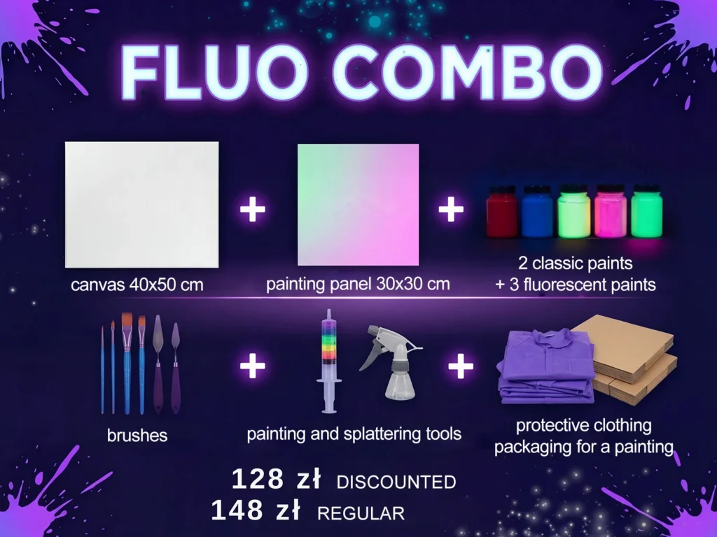 Forget boring museums and ordinary paintings – at Fluoland, you are the artist and your masterpiece will shine under magical UV light! Here you can splash, spill and experiment with fluorescent paints, creating something absolutely unique. There are no rules, no patterns – just pure creativity and great fun! You’re surrounded by neon colors that change and dance in the light, and every brushstroke creates mesmerizing effects.