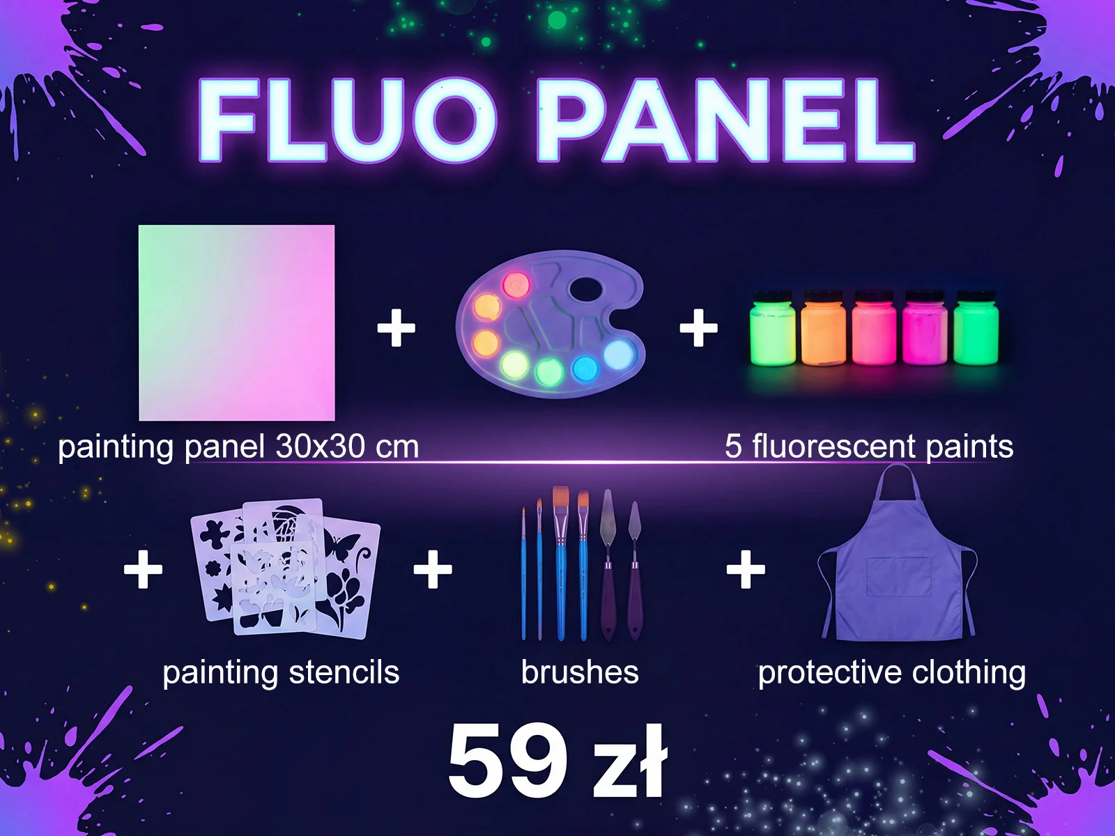Be like Piccasso, splash, spill, spin tables, shoot paint and play in the dark with Fluo colors!