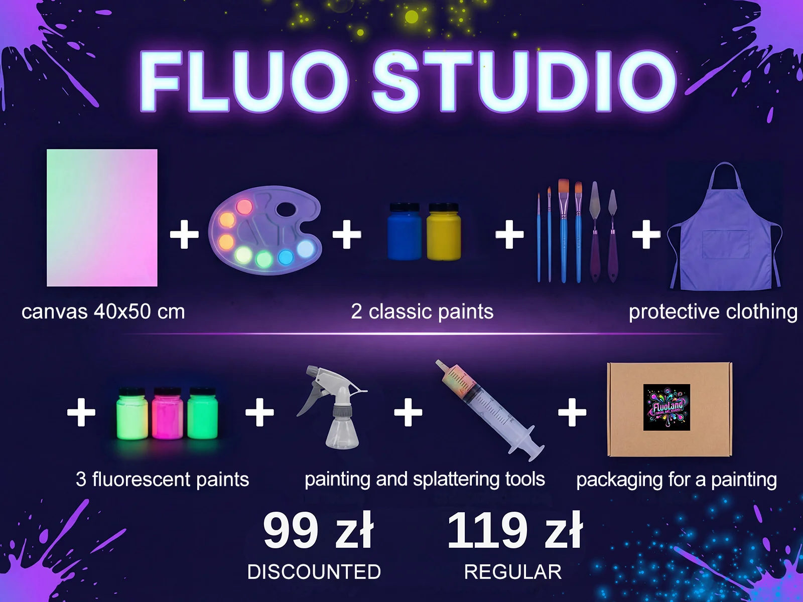 Looking for an idea for an unforgettable birthday party full of creative fun? Fluoland is the perfect place for a unique birthday party where kids can paint with glowing paints, splash colors and create their own unique works of art!